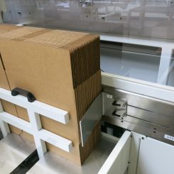 - De planokartonaanvoer en het plaatsen van de producten d.m.v. een servo motoren voor optimale precisie en snelheid